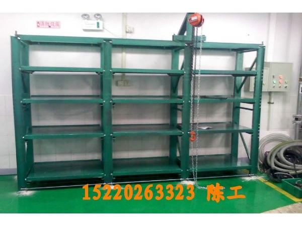 抽屜式模具架又稱模具貨架。主要用于存放各種模具物品;頂部可配置移動葫蘆車(手拉或電動),抽屜底部設(shè)有滾輪軌道,承載后依然能用很小的力自如地拉動,附加定位保險裝置,安全可靠;根據(jù)承載能力可分為輕量型、中量型和重量型三種。操作輕便:采用軸承組合,滑動平移并附有獨立吊模裝置,無需大型行車及叉車。