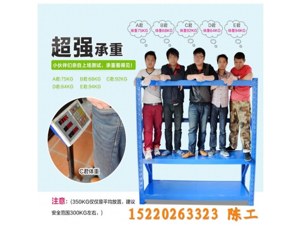 8、承重力大、不易變形、連接可靠、拆裝容易,多樣化,全部貨架的表面均經(jīng)酸洗、磷化、靜電噴涂等工序處理,防腐、防銹 輕型貨架每層在均勻分布的狀態(tài)下承重可達50kg-150kg,可組成平臺使用,層與層之間高度可按照貨物的尺寸任意調(diào)節(jié), 中量型擱板式貨架特點:整個貨架是全部采用軋型鋼,做到全免緊固件安裝。安裝和拆卸都非常方便,容易,整體結(jié)構(gòu)簡單。 輕型 中型、重型貨架通過橫梁與柱片的連接使貨架增加了堅固性和穩(wěn)定性,每層高度可根據(jù)實際需要50mm進行上下調(diào)節(jié),每層在均勻分布狀態(tài)下承載最大可達,輕型120kg .中型200kg   . 重型300kg