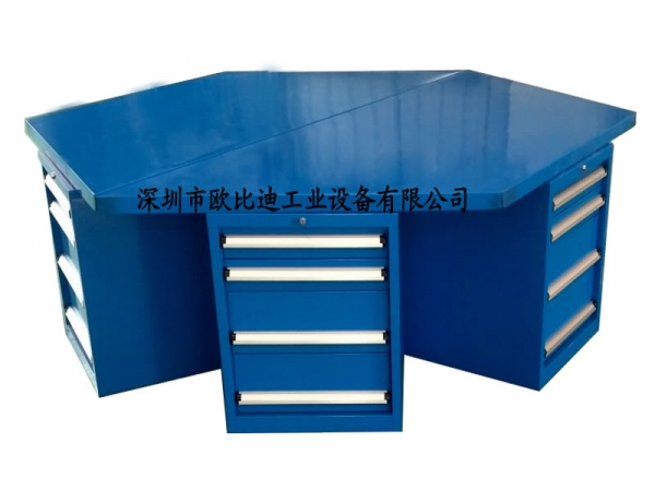 歐比迪鉗工桌技術(shù)參數(shù):L*D(2400*1200/2000*1000/1800*900)*H800MM+臺(tái)面30/50MM:可按用戶要求定做其規(guī)格尺寸.歐比迪商品簡描:采納寶鋼優(yōu)質(zhì)冷軋鋼板外框:1.2mm 。配置業(yè)界最先進(jìn)的互鎖機(jī)構(gòu)和防傾倒系統(tǒng)。臺(tái)面下部配置六個(gè)工具柜530*530*750MM工具柜可抽屜式和單開門吊柜組合配置歐比迪基本桌面:高分子復(fù)合桌面、防靜電桌面、防火板桌面、櫸木桌面、橡木層壓板桌面、鐵板合成面、不銹鋼包臺(tái)面。詳情請(qǐng)參考工作桌選配表。導(dǎo)軌采用3MM鋼板制作單節(jié)導(dǎo)軌,抽屜可承重80kg,活動(dòng)靈活。表面抗沖擊噴塑處理,臺(tái)面與臺(tái)體牢固連接;抽屜把手采用鋁型材,有安全卡扣配置,可自動(dòng)鎖住抽屜,導(dǎo)軌采用軸承配置,可承載100KG,抽屜規(guī)格分別為:3×100mm ,1x150mm,1×200mm;均配置全寬型鋁合金把手及安全鎖扣(屜內(nèi)3*3分隔每5公分可調(diào)節(jié));單開門吊柜配置閃電鎖里面加一塊1.2mm層板可承載100KG.客戶特殊要求可以定制。歐比迪桌上配置:六角小臺(tái)面、電源防護(hù)罩、照明架、吊架、擱板、方孔掛板、百葉掛板、動(dòng)力電源插座、電器盒、零件盒掛條等,滿足用戶不同的需求。詳情請(qǐng)參考工作桌掛板表。歐比迪鉗工臺(tái)表面處理:通過先進(jìn)的自動(dòng)化靜電噴涂工藝進(jìn)行表面處理。顏色自定。歐比迪自訂選配:桌下可選配各種類型的工具柜,滿足用戶裝載物品的需求。可完全按照您所需工位非標(biāo)設(shè)計(jì)生產(chǎn)制造!各種類型的六角工作臺(tái)均采用組合式設(shè)計(jì)、拆裝組合容易且穩(wěn)固、耐用。
