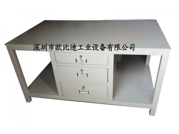 歐比迪工作臺(tái)桌面材質(zhì):臺(tái)面采用30/50MM厚灰白色防火板材料,耐磨、防火?;宀捎酶呃w維板,四周使用高強(qiáng)度塑膠包邊不易受撞擊損壞。歐比迪鉗工桌基本桌面:高分子復(fù)合桌面、防火板桌面、櫸木桌面、橡木層壓板左面、防靜電桌面、電木板帖面等,鐵板合成面、不銹鋼包臺(tái)面、鋼板臺(tái)面、鑄鐵臺(tái)面。詳情請(qǐng)參考工作桌選配表。歐比迪模具臺(tái)整體框架:采用優(yōu)質(zhì)鋼板2.0mm厚的專用模具及鯤扎工藝制作成型,桌腿截面100*50*2.0MM橫梁截面80*50*2.0MM,整體可承重1000KG,根據(jù)用戶的承載要求,可選擇不同形狀的桌腳。工作臺(tái)桌上配置:照明架、吊架、擱板、方孔掛板、百葉掛板、動(dòng)力電源插座、電器盒、零件盒掛條等,滿足用戶不同的需求。詳情請(qǐng)參考工作桌掛板表。鉗工臺(tái)桌下配置:吊柜、開門柜、落地柜、抽屜柜、組合柜、雙開門柜等形式,根據(jù)需求訂做;表面處理:通過先進(jìn)的自動(dòng)化靜電噴涂工藝進(jìn)行表面處理。顏色自定。自訂選配:桌下可選配各種類型的工具柜,滿足用戶裝載物品的需求??赏耆凑漳韫の环菢?biāo)設(shè)計(jì)生產(chǎn)制造!各種類型的工作桌均采用組合式設(shè)計(jì)、拆裝組合容易且穩(wěn)固、耐用。廣泛適用:模具廠,組裝廠,電子廠,機(jī)械廠,實(shí)驗(yàn)室,測試單位,食品廠,塑膠廠,鋼木等及其他類型工廠使用。為鉗工、模具、裝配、包裝、檢測、維修等各種生產(chǎn)工作而專門設(shè)計(jì)。適合鉗工工作。廣泛適用:模具廠,組裝廠,電子廠,機(jī)械廠,實(shí)驗(yàn)室,測試單位,食品廠,塑膠廠,鋼木等及其他類型工廠使用。為鉗工、模具、裝配、包裝、檢測、維修等各種生產(chǎn)工作而專門設(shè)計(jì)。歐比迪供應(yīng)修模工作臺(tái)、模具修模工作臺(tái)、鋼板修模工作臺(tái)、鐵制修模工作臺(tái)、不銹鋼桌面修模工作臺(tái)、櫸木桌面修模工作臺(tái)、制模修模工作臺(tái)、重型修模工作臺(tái)、鉗工修模工作臺(tái)、定制修模工作臺(tái)
