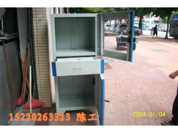 9:以上四種型號的電腦柜都為鋼板制成,兩處可鎖,電腦柜整體為鋼制結(jié)構(gòu),材質(zhì)采用2.00mm冷軋板折彎成形,配置移動腳輪和腳墊,配置三頭插座電源,上柜為650mm,下柜為950mm,可存放21寸電腦顯示器: