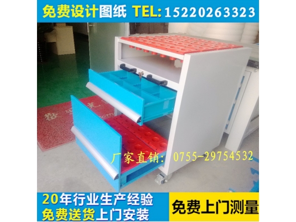 4、在柜體頂部可選配:綠色條紋膠皮、圍邊、圖板、活動背板、方孔掛板或百葉掛板、增加刀具車的使用功能。