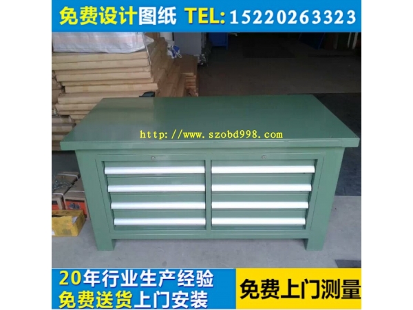 歐比迪鉗工桌技術(shù)參數(shù):1200*750/1500*750/1800*750/2000*1000*800MM:可按用戶要求定做其規(guī)格尺寸。桌面材質(zhì):臺(tái)面采用1.0/1.2/1.5/2.0/MM不銹鋼包30/47MM厚高密度板,根據(jù)用戶工作需求選擇不同桌面;工作臺(tái)桌面可選擇特殊成型高分子纖維板等不同材質(zhì)、不同厚度的基材,歐比迪基本桌面:高分子復(fù)合桌面、防火板桌面不銹鋼包面、櫸木桌面、橡木層壓板左面、防靜電桌面、電木板帖面等,鐵板合成面、不銹鋼包臺(tái)面、鋼板臺(tái)面、 鑄鐵臺(tái)面。詳情請(qǐng)參考?xì)W比迪工作桌選配表。歐比迪工作臺(tái)整體框架:采用優(yōu)質(zhì)鋼板2.0mm厚的專用模具及鯤扎工藝制作成型,桌腿截面100*50*2.0MM橫梁截面80*50*2.0MM,整體可承重3000KG,根據(jù)用戶的承載要求,可選擇不同形狀的桌腳。桌上配置:照明架/吊架/擱板/方孔掛板/百葉掛板/擋板/擱物架/動(dòng)力電源插座/電器盒/零件盒掛條等,滿足用戶不同的需求。詳情請(qǐng)參考工作桌掛板表。歐比迪鉗工桌表面處理:通過先進(jìn)的自動(dòng)化靜電噴涂工藝進(jìn)行表面處理。顏色自定。自定選配:桌下可選配抽屜、吊柜、落地柜、組合柜、單開門柜、雙開門柜,滿足用戶裝載物品的需求??赏耆凑漳韫の环菢?biāo)設(shè)計(jì)生產(chǎn)制造!各種類型的工作桌均采用組合式設(shè)計(jì)、拆裝組合容易且穩(wěn)固、耐用。廣泛適用:模具廠,組裝廠,電子廠,機(jī)械廠,實(shí)驗(yàn)室,測(cè)試單位,食品廠,塑膠廠,鋼木等及其他類型工廠使用。為鉗工、模具、裝配、包裝、檢測(cè)、維修等各種生產(chǎn)工作而專門設(shè)計(jì)。歐比迪供應(yīng)修模工作臺(tái)、模具修模工作臺(tái)、鋼板修模工作臺(tái)、鐵制修模工作臺(tái)、不銹鋼桌面修模工作臺(tái)、櫸木桌面修模工作臺(tái)、制模修模工作臺(tái)、重型修模工作臺(tái)、鉗工修模工作臺(tái)、定制修模工作臺(tái)