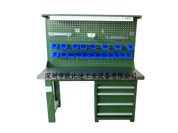 4、鋼板工作臺(tái)多種標(biāo)準(zhǔn)附件:掛板、工具柜、燈具、臺(tái)鉗等滿足各種作業(yè)要求;